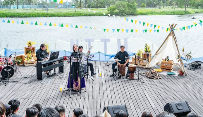開幕的音樂表演由大和泰雅歌姬 Eri Liao & Jazz Trio 打頭陣,演唱最新專輯《歌仔曹七巧》中的選曲。該專輯由歌仔戲名家李靜芳與 Eri Liao 共同演繹,改編自張愛玲經典小說《金鎖記》,融合歌仔戲的哭調與爵士樂的即興語法,以台語吟詠女性命運的裂痕,展現跨越語言、文化與音樂形式的創作實驗。隨後由東大熱音社與音樂系樂團「一隻大皮鞋」接力演出,帶來校園原創與打擊樂的熱力演出,讓草地上的午後節奏感十足。