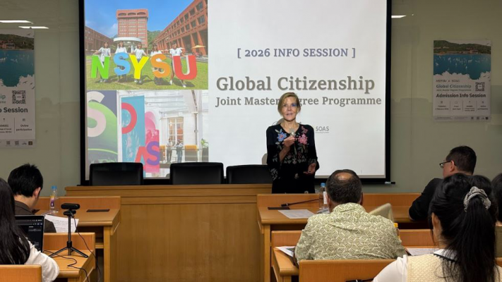 國立中山大學與倫敦大學亞非學院(SOAS University of London)114年4月簽署校級合作備忘錄、12月正式簽署「全球公民權碩士學位學程—學位授予協議書」,期間雙方多次密集討論協作,日前舉辦「NSYSU-SOAS全球公民權碩士學位學程」招生說明會,正式啟動深度學術合作。